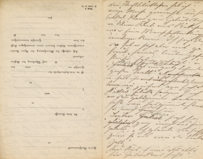 Fragment rukopisu Didi und Konsorten (Didi a spol., 1903), zapsaný rukou Josefy Metzové na soudních formulářích jejího otce. Bielefeld City Archives, fonds 200,49/legacy of Josefa Metz, no. 31
