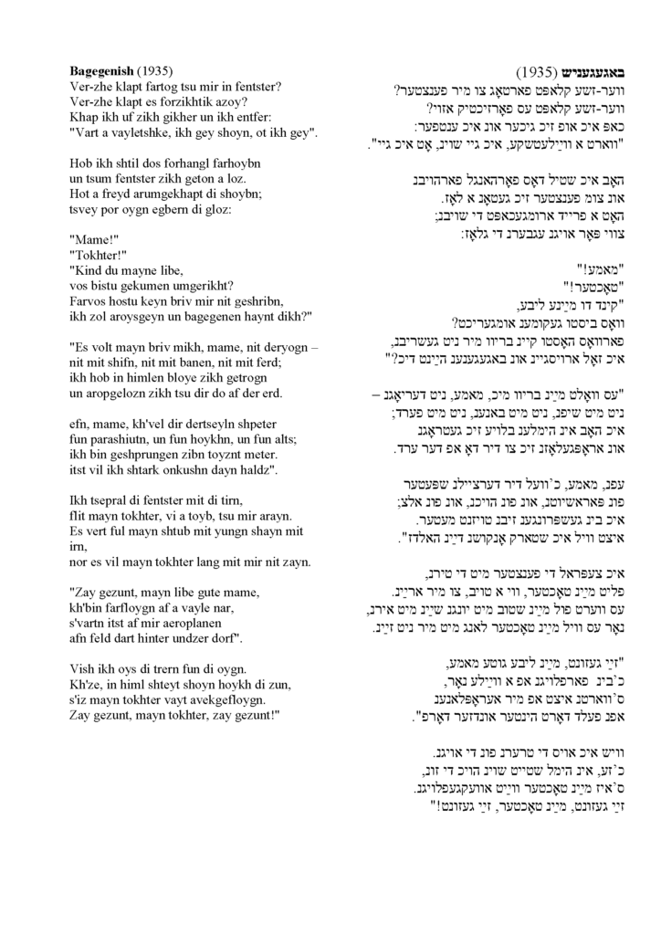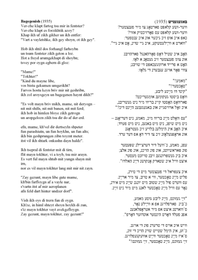 Bagenish in Yiddish (1935)
