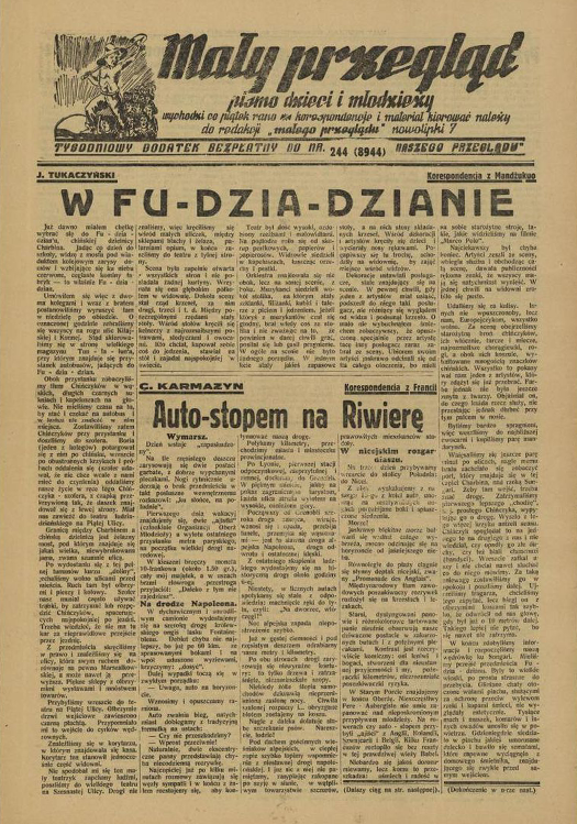 W latach 1926 – 1930 Korczak prowadził gazetę dziecięcą Mały Przegląd. Była ona redagowana i pisana przez dzieci. Drukowano w niej dziecięce reportaże (autorstwa np. późniejszego pisarza Józef Hena czy filozofa Zygmunta Baumana, którzy byli wtedy małymi chłopcami).
